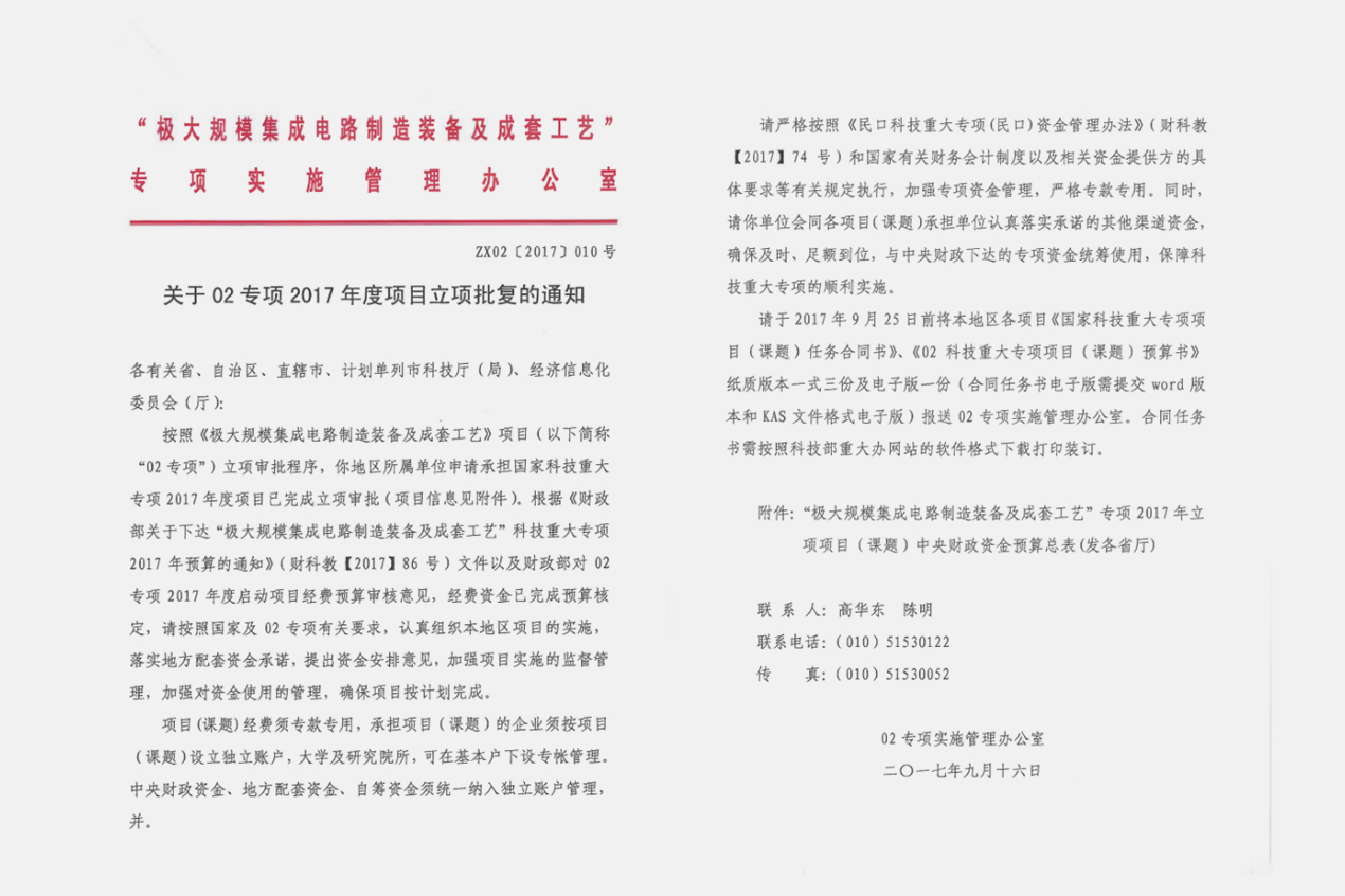 · 獲得國家“02-專項”ArF光刻膠開發和產業化項目立項。