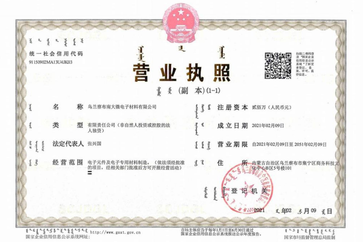 12月28日,江蘇南大光電材料股份有限公司正式注冊成立。