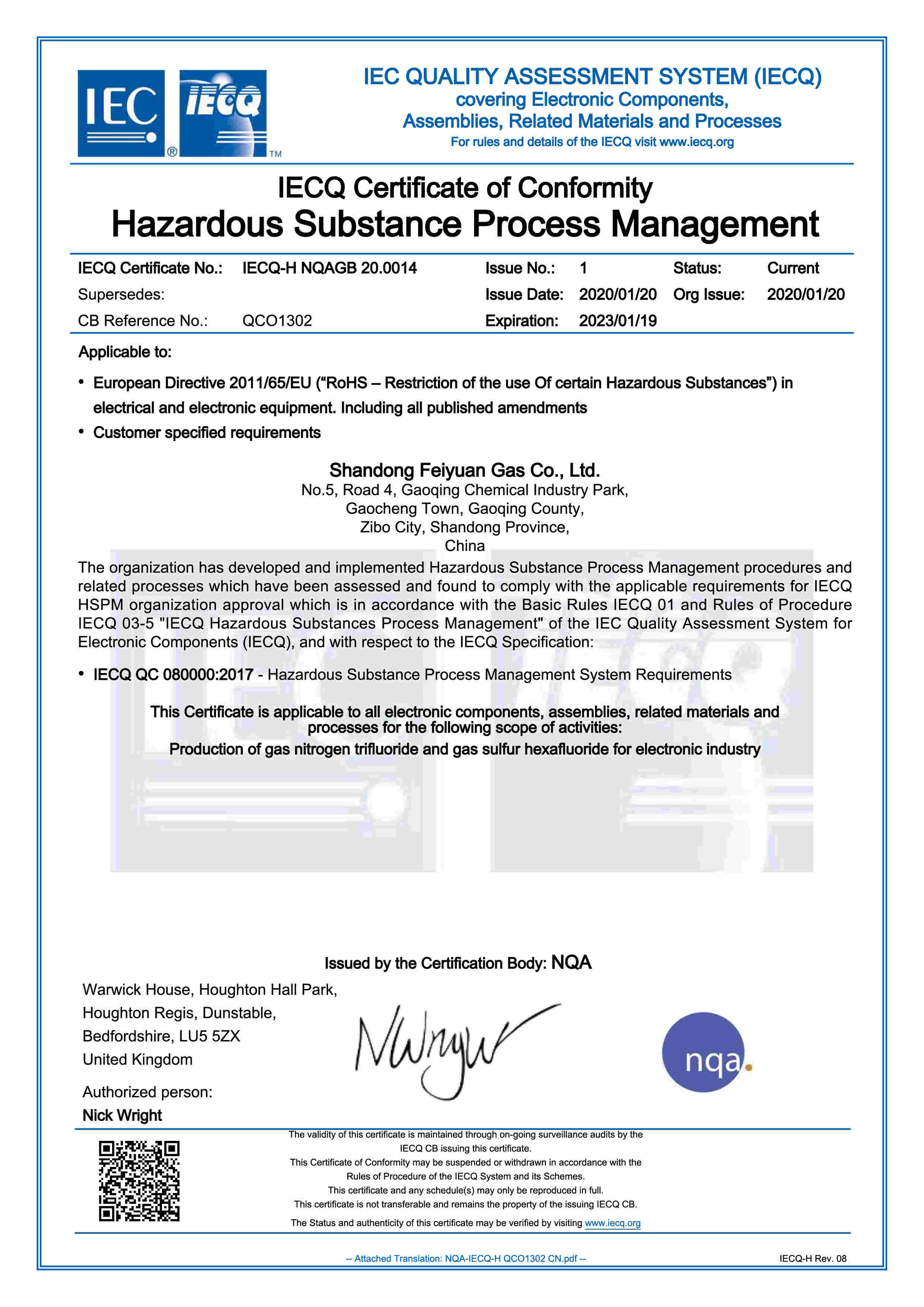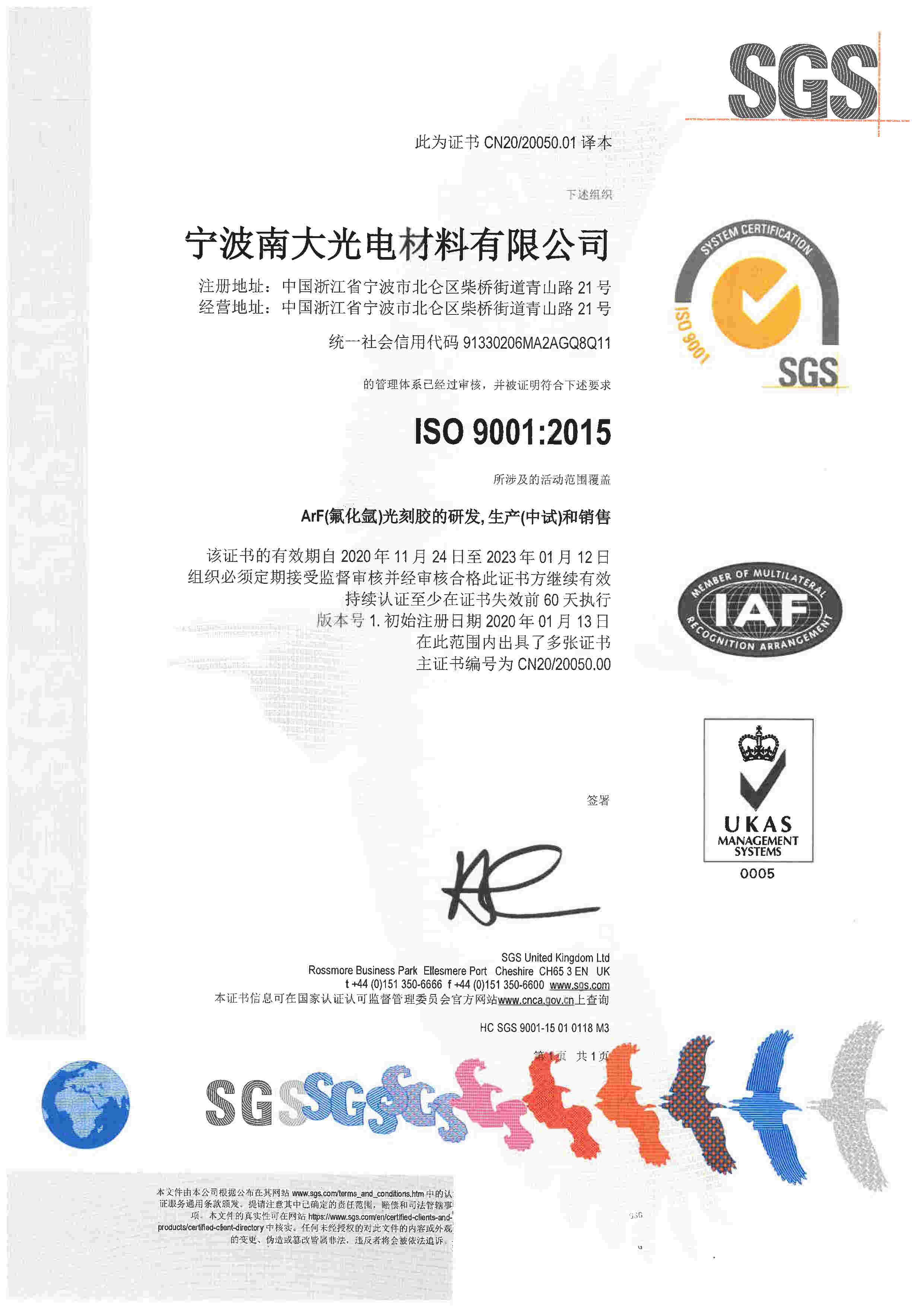 ISO14001證書